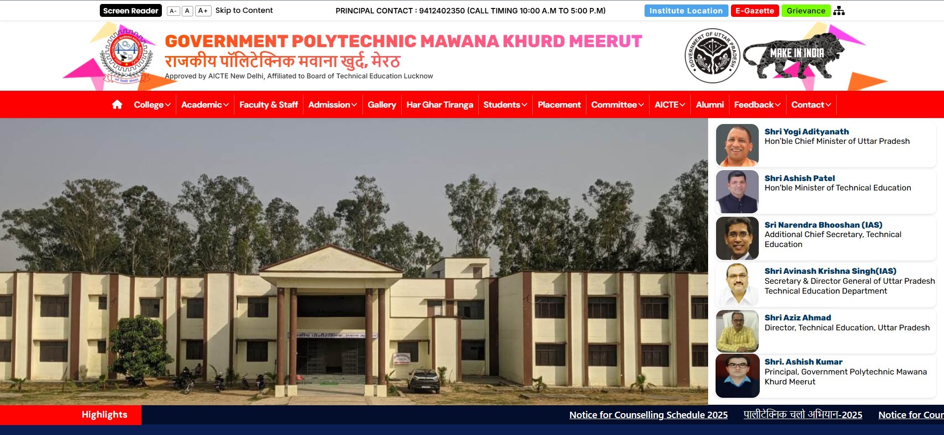 Established in 2016 under the Technical Education Department of Uttar Pradesh, Government Polytechnic Mawana Khurd, Meerut is recognized as a Centre of Excellence in Engineering, Technology, and Management. The institute offers diploma courses in Civil Engineering, Mechanical Engineering (Automobile), and Computer Science & Engineering with dedicated faculty and modern infrastructure.